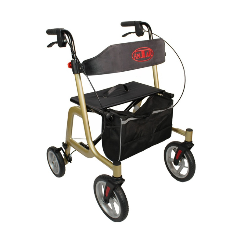 Model AT51044 został wyposażony w ręczne i postojowe hamulce, które zapewniają pełną kontrolę nad ruchem, a także w duże koła (10 cali z przodu i 8 cali z tyłu), gwarantujące płynność jazdy na różnych nawierzchniach. Dodatkowe udogodnienia, takie jak wygodne siedzisko, praktyczna torba na zakupy oraz uchwyt na laskę, czynią ten chodzik idealnym rozwiązaniem dla osób ceniących funkcjonalność i niezależność.