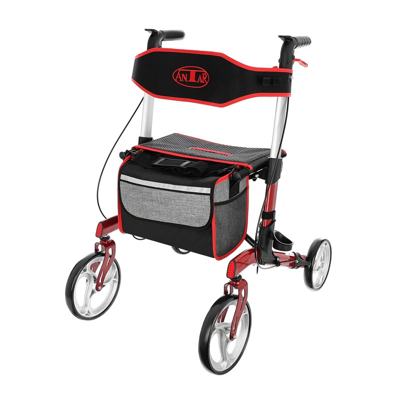 Model AT51039 wyposażony został w ergonomiczne siedzisko z oparciem (wysokość 55 cm), torbę na drobiazgi oraz praktyczny uchwyt na laskę. Dzięki zaawansowanemu systemowi hamulców ręcznych z funkcją blokady użytkownik ma pełną kontrolę nad ruchem chodzika oraz bezpieczeństwo podczas odpoczynku.